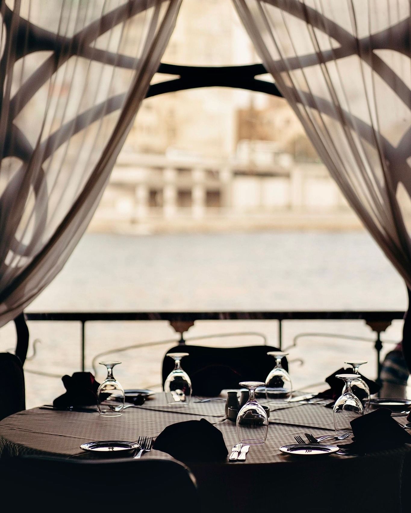 luxo flutuante de cristal do Nilo, acreditamos que cada momento vale a pena celebrar. Desfrute de um menu personalizado e de um serviço personalizado que se adapta às suas necessidades. Com vistas deslumbrantes do Nilo como pano de fundo, cada evento torna-se extraordinário. Deixe-nos ajudá-lo a criar memórias que durarão uma vida inteira nos nossos luxuosos cruzeiros com jantar no Cairo.