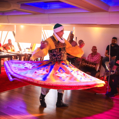 See the Cairo skyline after dark on a Nile River dinner cruise, and watch belly dancers and Tanoura performers take the stage as you enjoy a full buffet dinne, and combines dining,dancing, and music for a classic night on the Nile.
